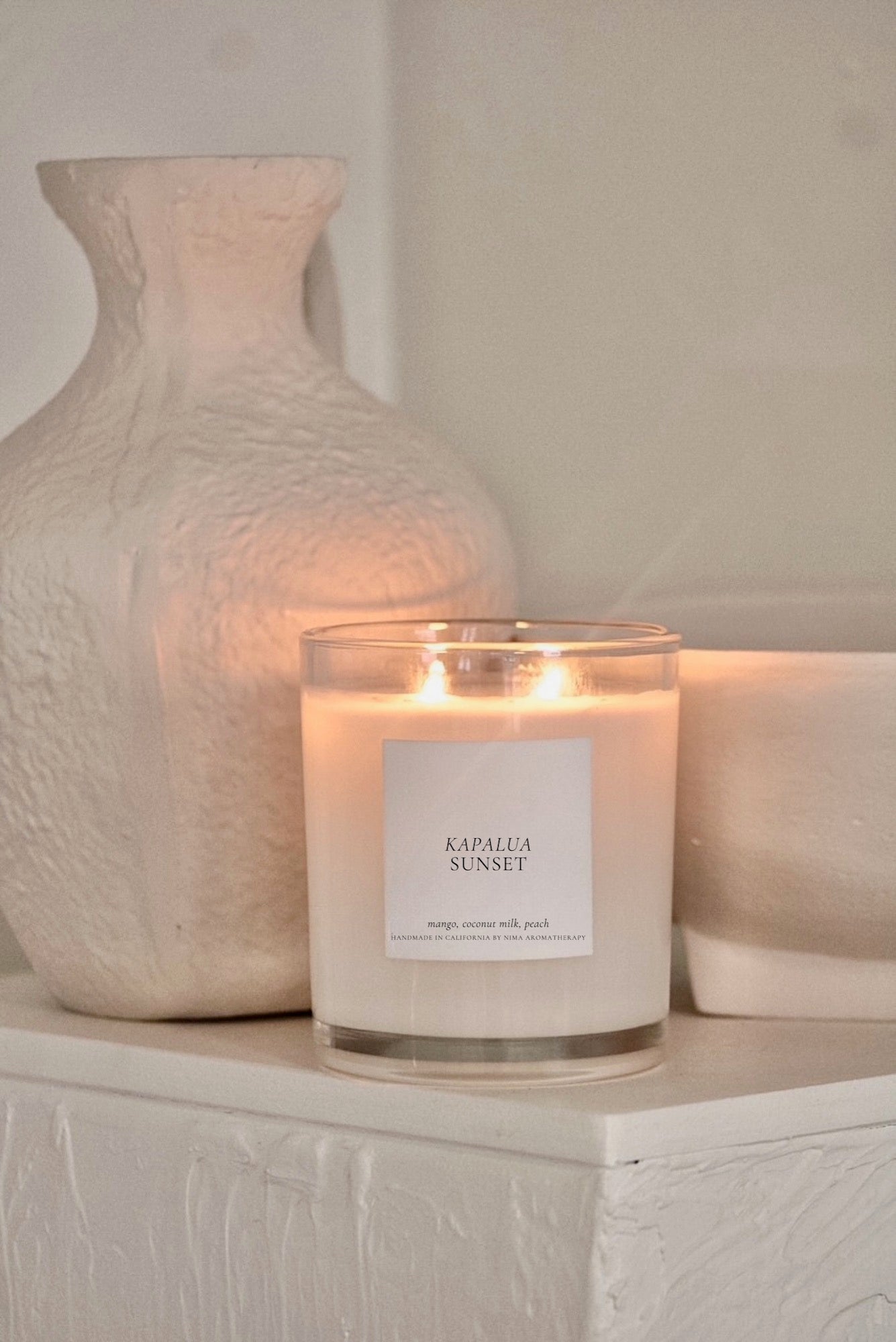 Inspired by the moment our best friends got engaged beneath the golden skies of Kapalua Bay, this candle captures the warmth of that evening with notes of sun-ripened mango, coconut milk, juicy peach, and soft sandalwood.